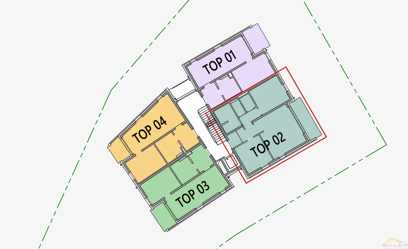Die Immobilie TOP 02, gelegen im 1. Obergeschoss, besticht durch ihre funktionale und harmonische Raumaufteilung: