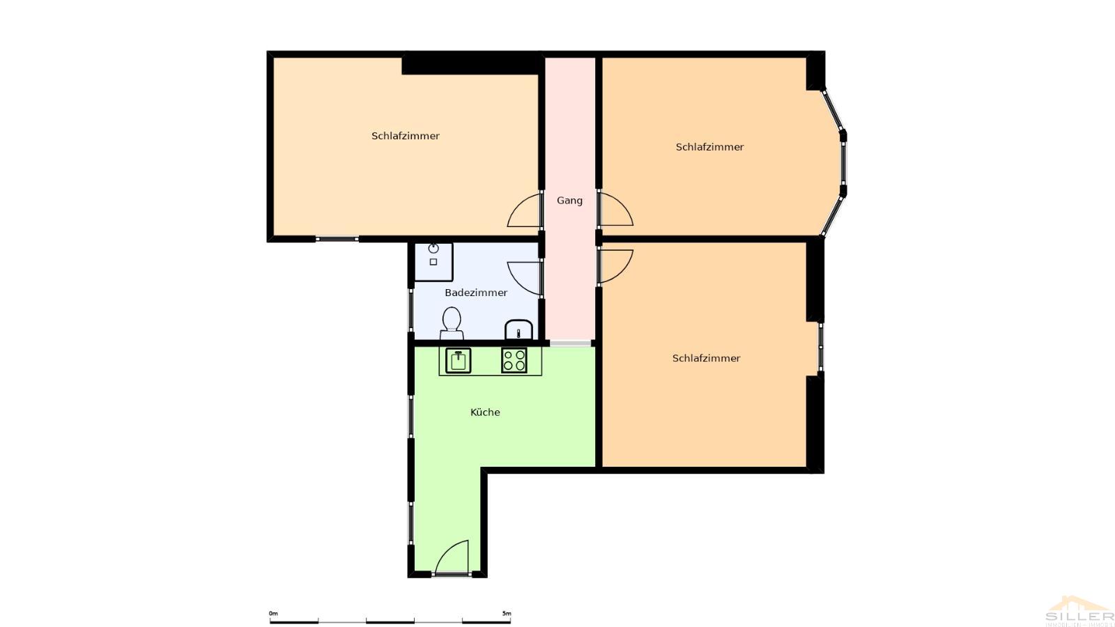 Die Wohnung selbst besteht aus einer Wohnküche (Küchenblock vorhanden), drei nahezu gleich großen Schlafzimmern – eines davon mit einem schönen Erker – sowie einem Badezimmer mit WC und Fenster. Ein Flur mit praktischer Nische bietet zusätzlichen Stauraum und kann ideal als Abstellbereich genutzt werden.