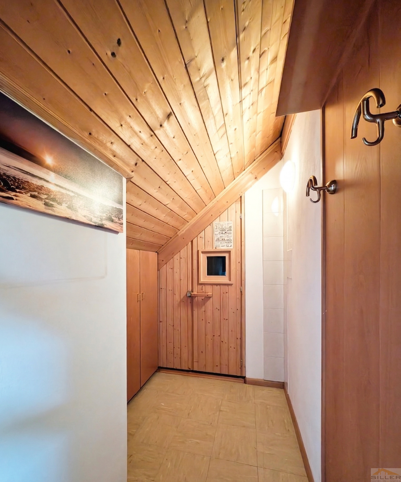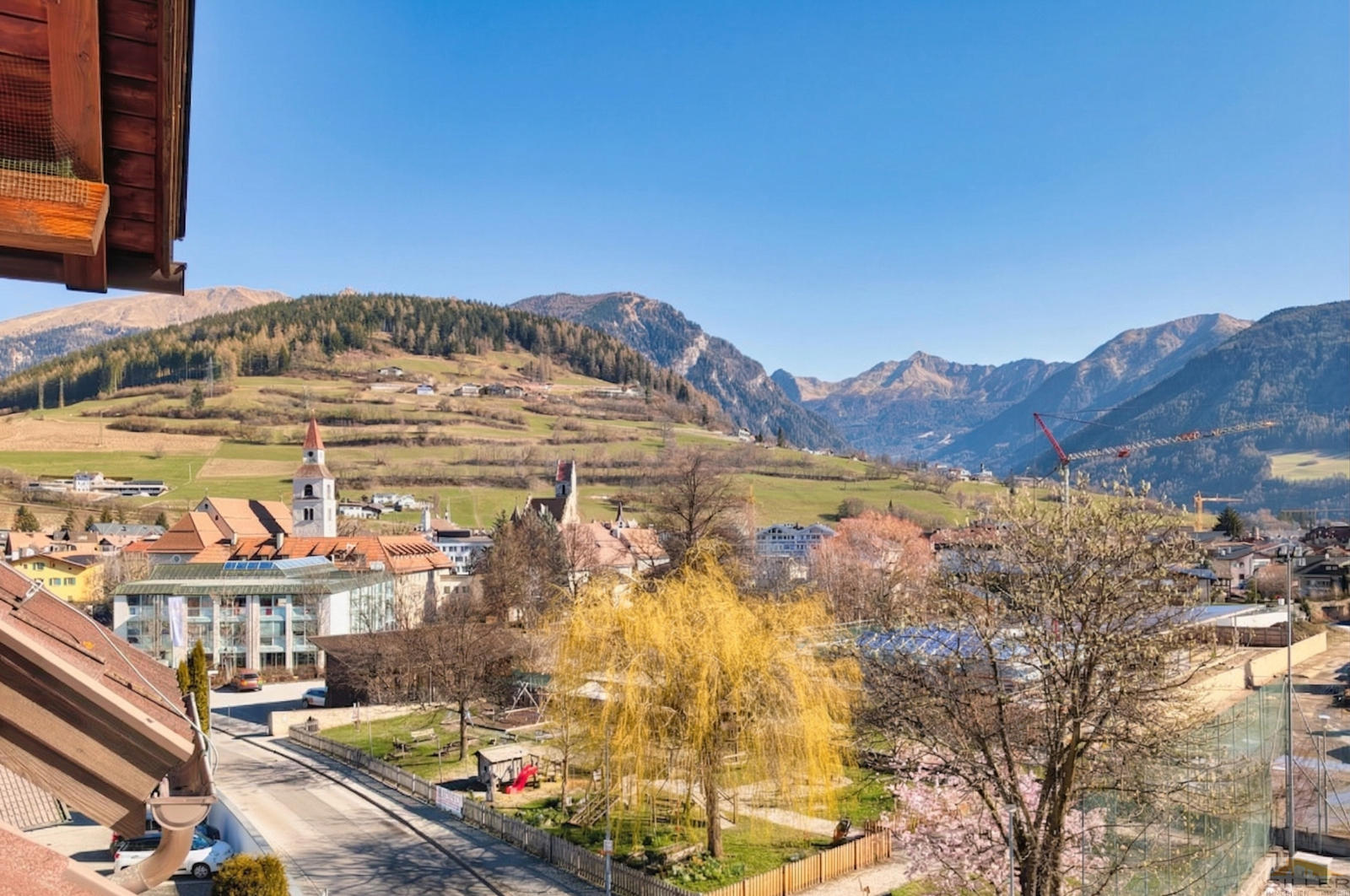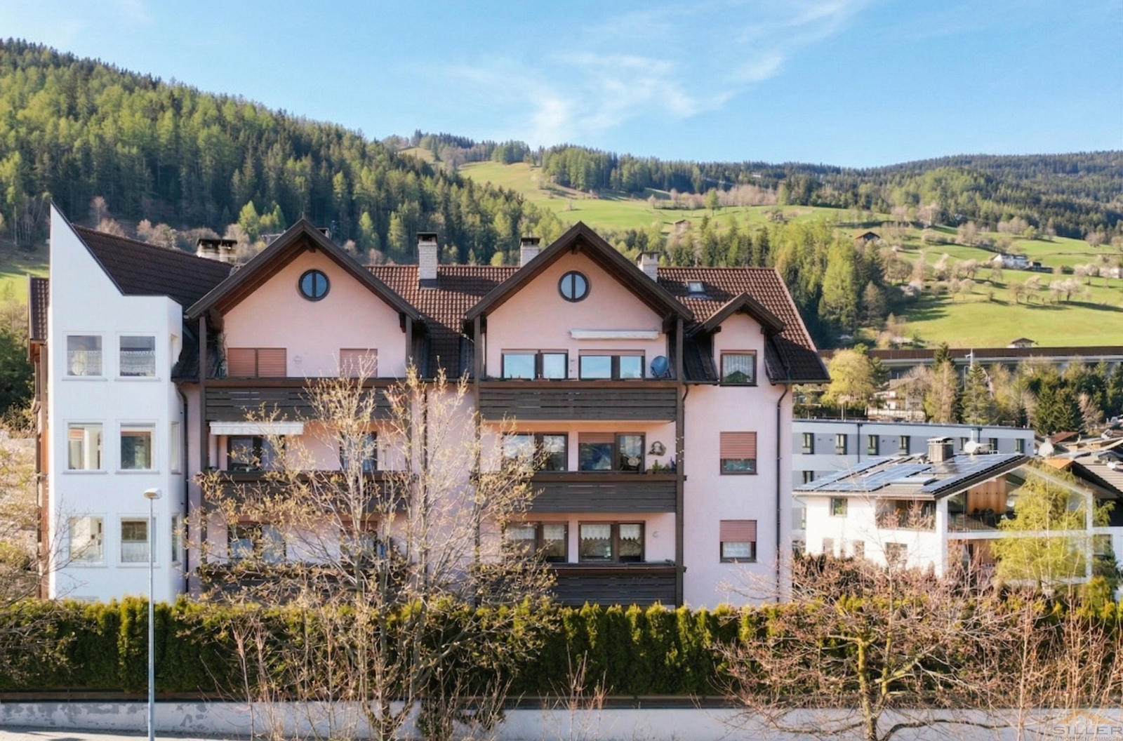 For sale is this spacious apartment with an additional attic level, located in an excellent, central residential area of Sterzing. The living space extends over two levels: the main living areas (large living room + eat-in kitchen), as well as the master bedroom and bathroom, are on the 3rd floor, while an additional sleeping area with three rooms and a bathroom/WC is located on the upper attic floor. In addition, a small private sauna on the upper floor invites you to relax and unwind before going to sleep. The maisonette apartment offers generous space for a family of at least five family members and features two beautiful balconies with unobstructed views and panoramic scenery, providing room for quality family time. Thanks to its south/east orientation, the apartment enjoys a particularly sunny and light-filled atmosphere.