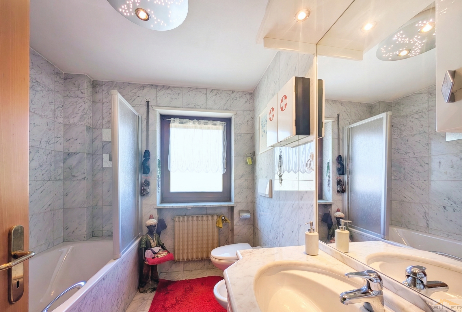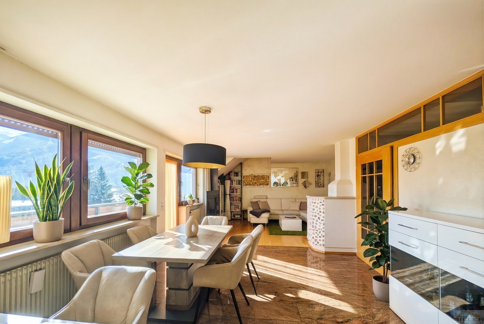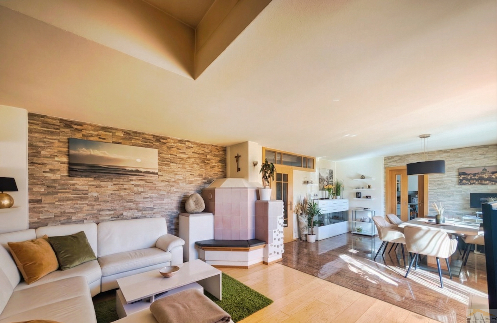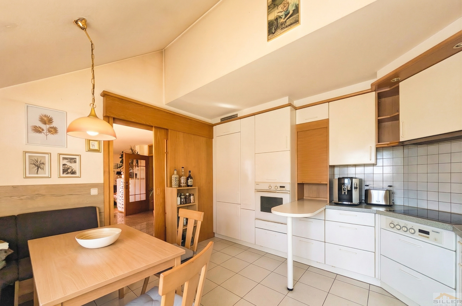 For sale is this spacious apartment with an additional attic level, located in an excellent, central residential area of Sterzing. The living space extends over two levels: the main living areas (large living room + eat-in kitchen), as well as the master bedroom and bathroom, are on the 3rd floor, while an additional sleeping area with three rooms and a bathroom/WC is located on the upper attic floor. In addition, a small private sauna on the upper floor invites you to relax and unwind before going to sleep. The maisonette apartment offers generous space for a family of at least five family members and features two beautiful balconies with unobstructed views and panoramic scenery, providing room for quality family time. Thanks to its south/east orientation, the apartment enjoys a particularly sunny and light-filled atmosphere.
