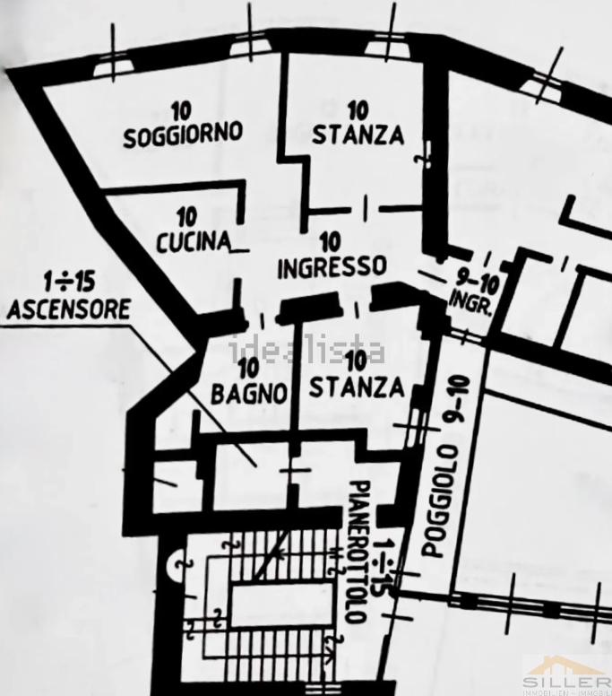A basement storage room provides additional space, while a garage in the nearby Via Esterle can be purchased for an additional fee.